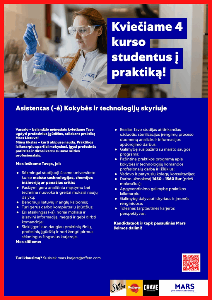Norėdami sužinoti daugiau apie siūlomą praktikos vietą, galite susisiekti su įmonės kontaktiniu asmeniu:
